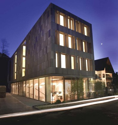 NEUBAU EINES BÜROGEBÄUDES MIT PRIVATWOHNUNG IN STAHLBETONSKELETTBAUWEISE MIT HOLZFASSADE